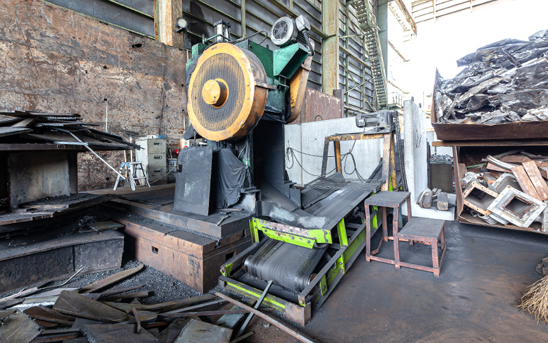 尾道市に位置する当社工場には、金属スクラップを効率的にリサイクル処理を行う各種設備を整えております。