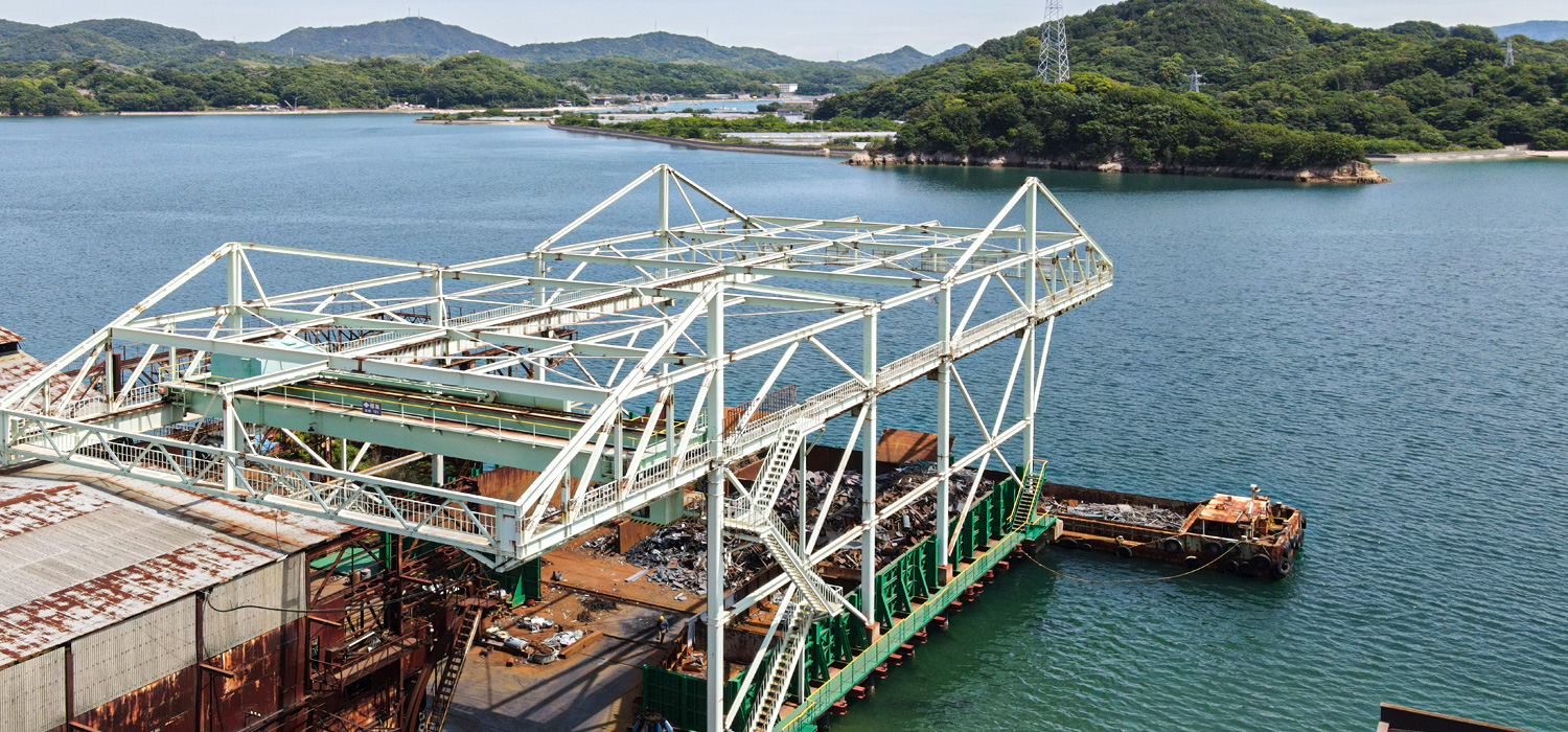 また、尾道周辺および広島県には造船所や自動車工場が多く立地しており、工場での製造工程より発生する鉄くずのリサイクル処理を多く行っています。